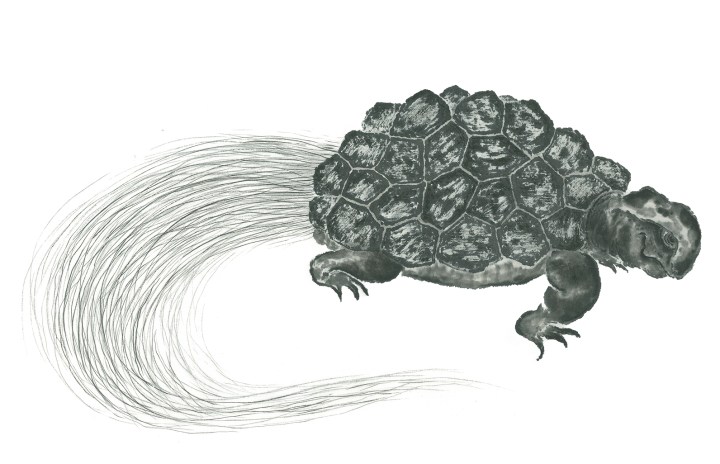 For art lovers a Special Edition of the artist book is available in a limited run of only 30 numbered copies, each marked with a unique stamp. This edition includes a signed and numbered copy of the Turtle and the Monk and an exclusive handmade Toyobo chine-collé print on mitsumata washi paper: 210 x 148 mm. You can choose from 3 different prints, each limited to just 10 copies.